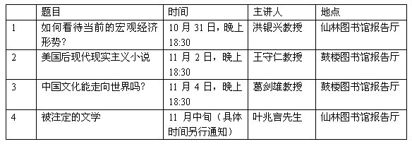 本届名家讲座我们邀请了洪银兴、王守仁、葛剑雄与叶兆言给我们做有关经济、文化与文学方面的专题讲座。