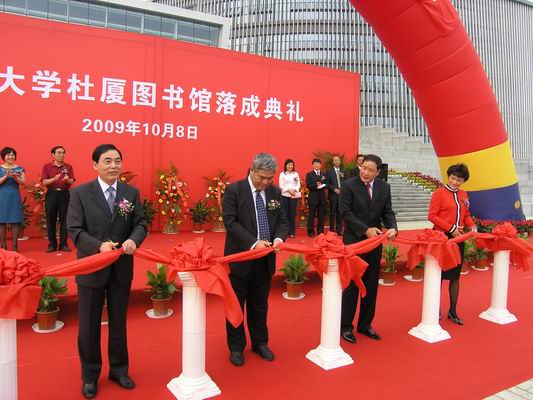 任利剑和薛海林分别介绍了出席落成典礼的领导和嘉宾,以及杜厦校友和杜厦图书馆的建设情况。