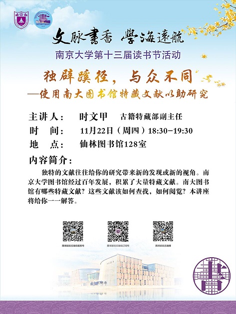 11月22日图书馆知识讲座之使用南大图书馆特藏文献以助研究
