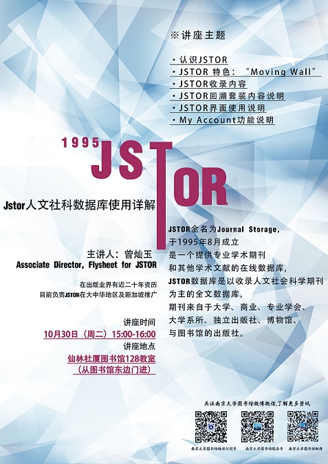 10月30日图书馆知识讲座之JSTOR人文社科数据库使用详解