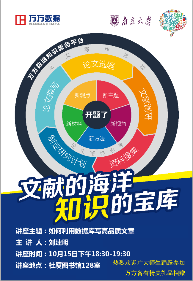 【讲座信息】10月15日图书馆知识讲座之如何利用万方数据写高品质文章