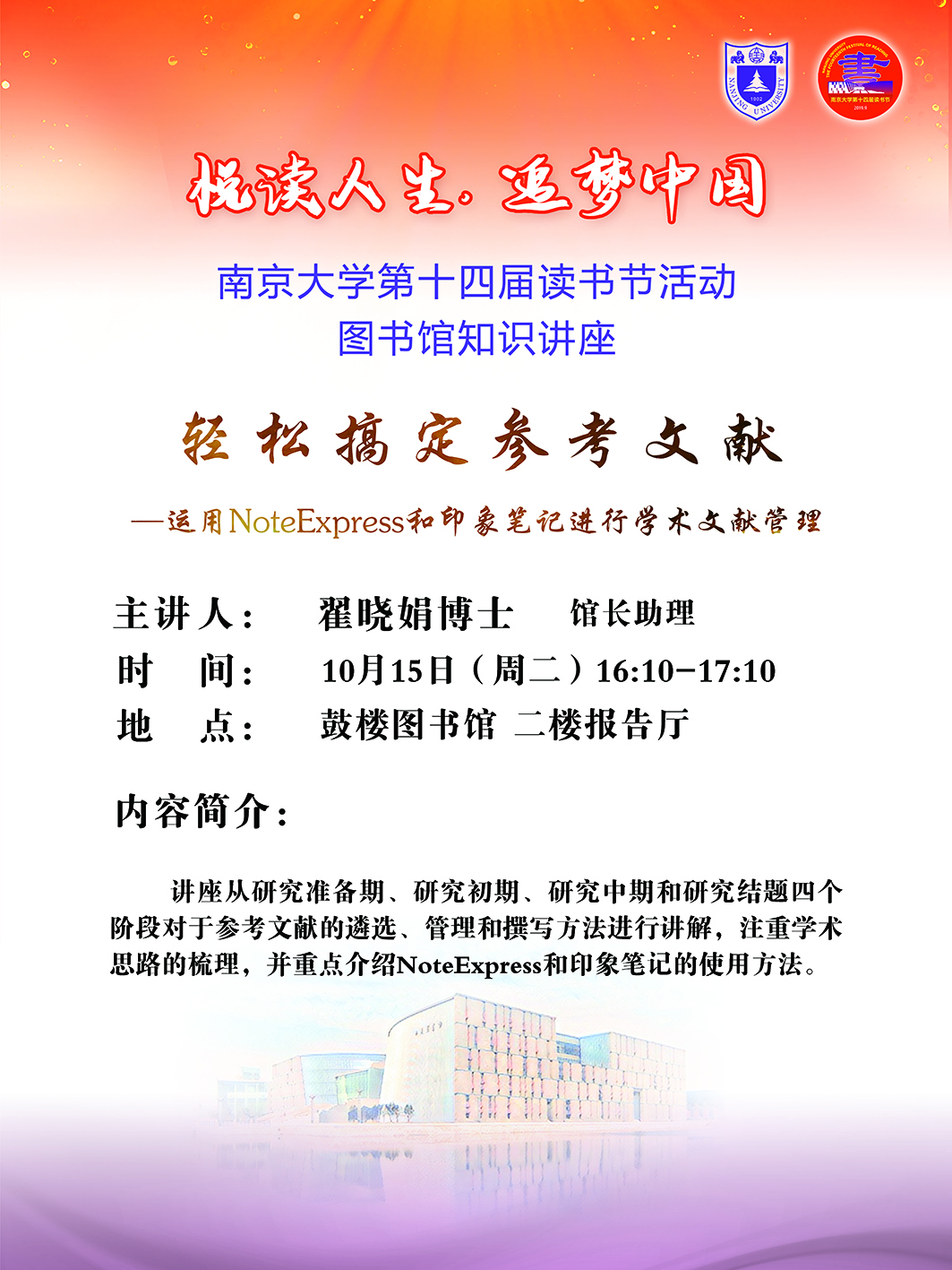 【讲座信息】10月15日图书馆知识讲座之轻松搞定参考文献