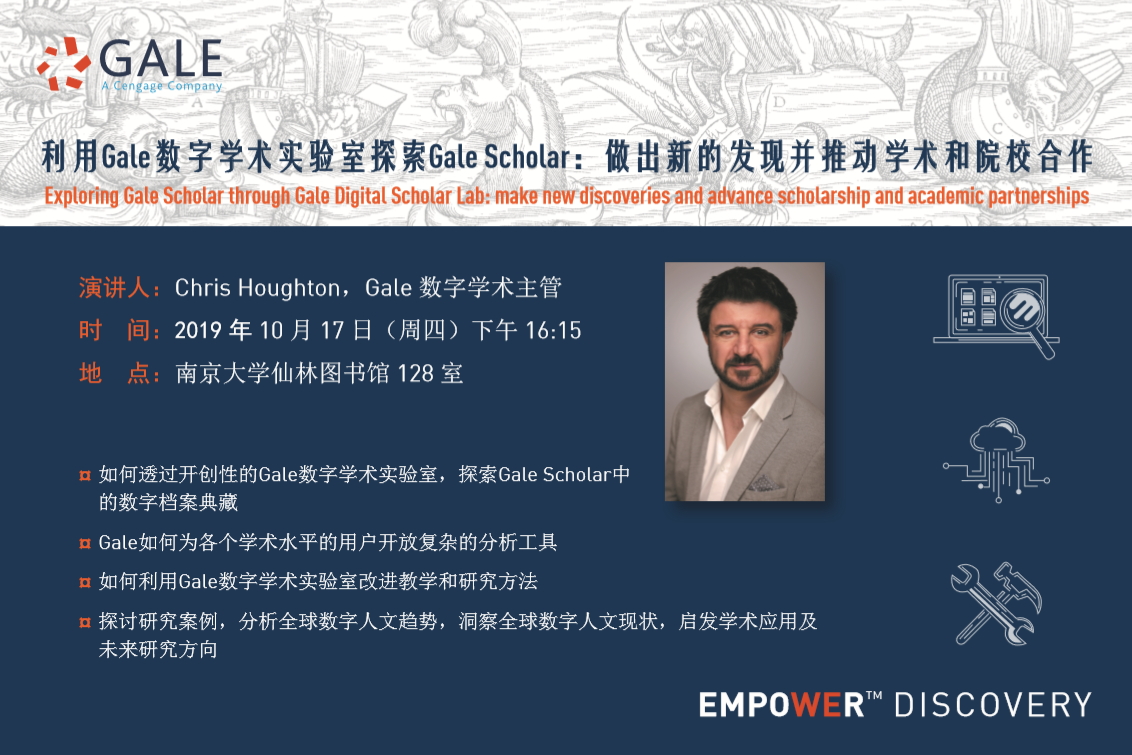 本讲座将详细介绍Gale Scholar的原始典藏资源,并通过案例展示Gale原始典藏的研究成果。介绍 “Digital Scholar Lab”(数字学术实验室)的内容并进行平台演示,利用数字人文研究工具对原始档案进行深度挖掘。