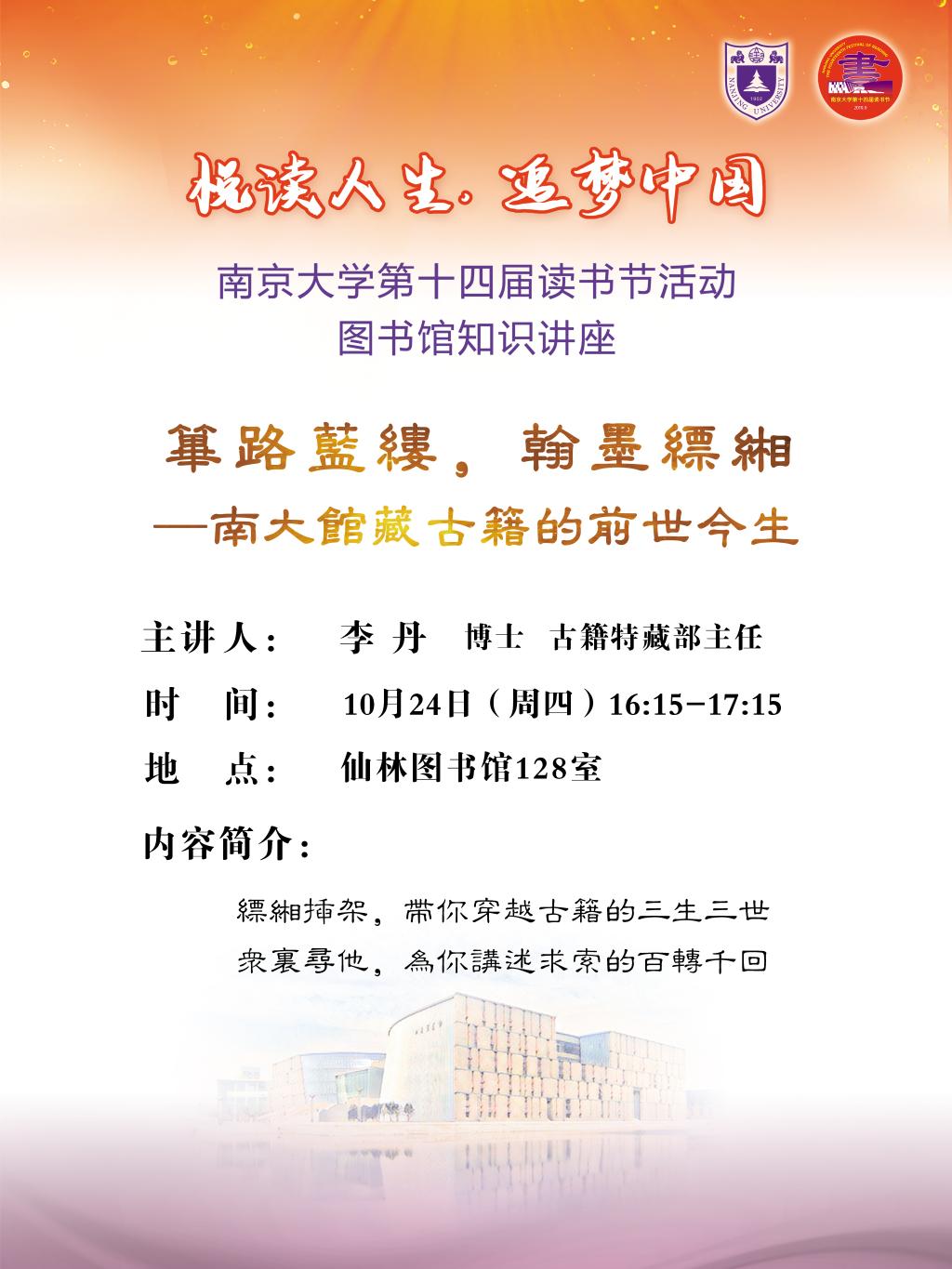 【讲座信息】10月24日图书馆知识讲座之南大馆藏古籍的前世今生