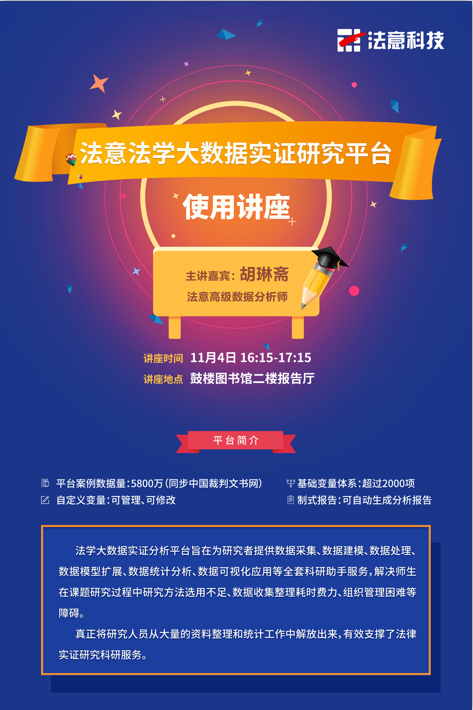 【讲座信息】11月4日图书馆知识讲座之法意法学大数据实证研究平台使用讲座