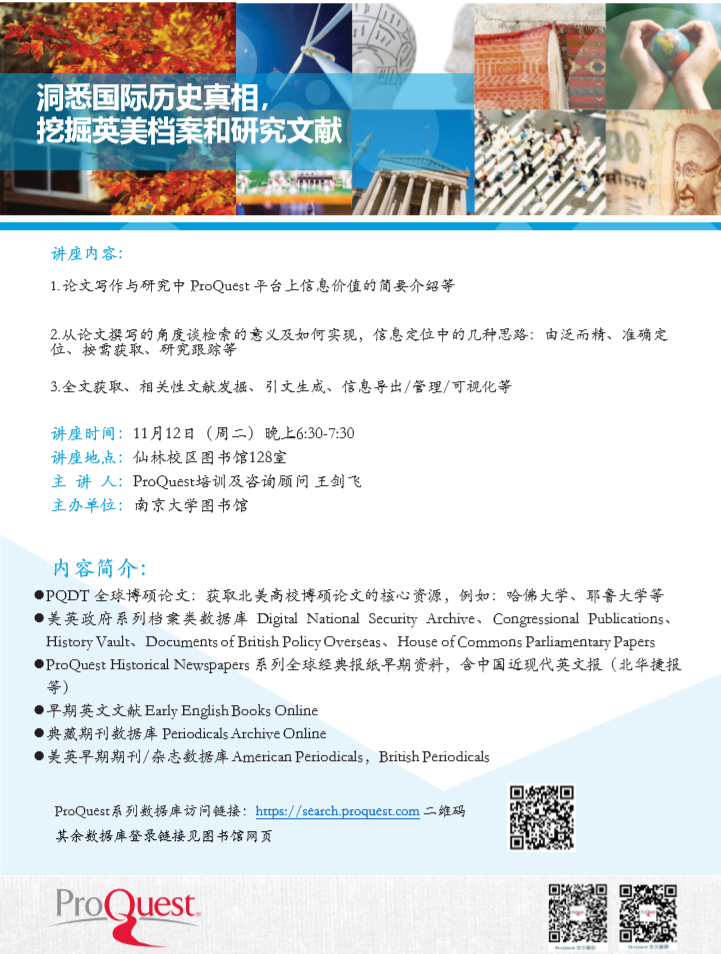 【讲座信息】11月12日图书馆知识讲座之洞悉历史真相 挖掘英美档案和研究文献