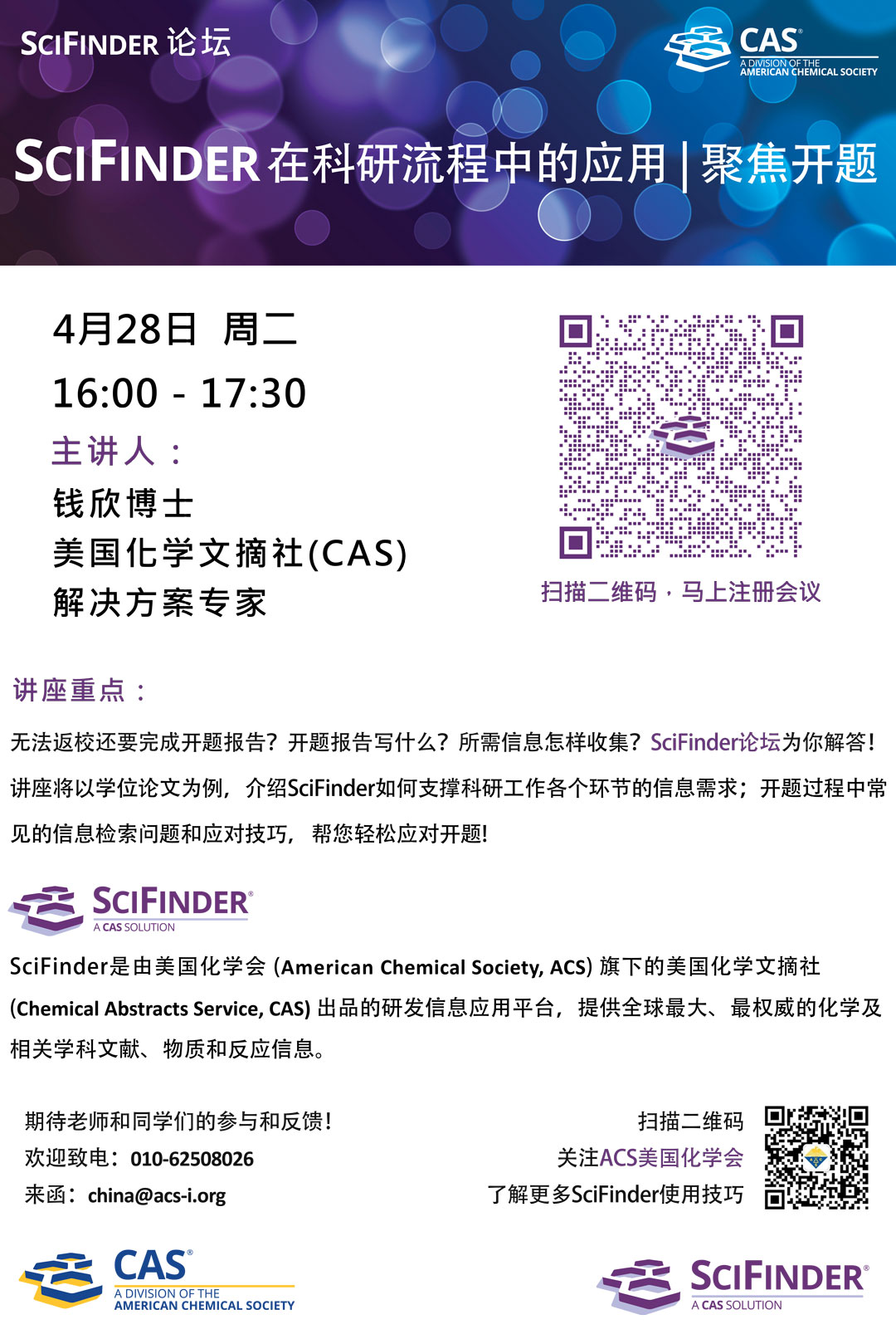 【讲座通知】聚焦开题——SciFinder在科研流程中的应用