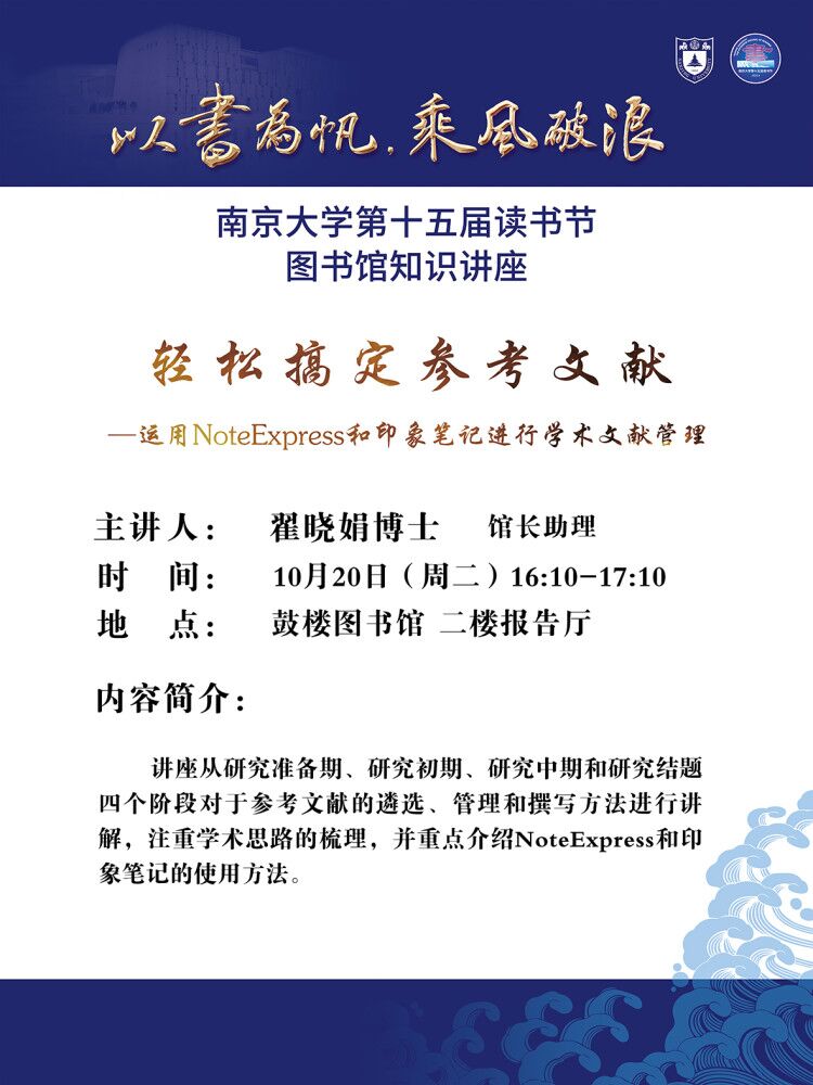 【讲座信息】10月20日图书馆知识讲座之轻松搞定参考文献