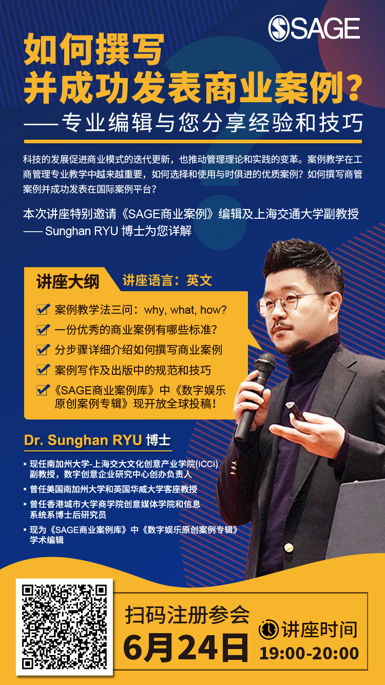 【讲座信息】SAGE教你如何撰写并成功发表商业案例
