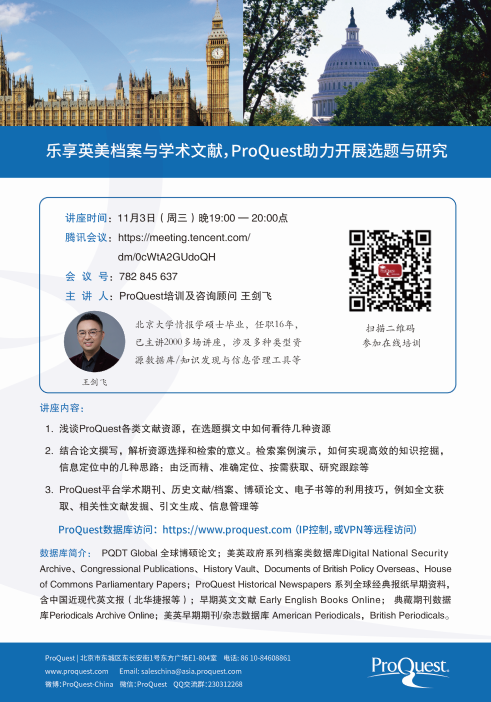 【讲座信息】11月3日图书馆知识讲座之ProQuest助力开展选题与研究