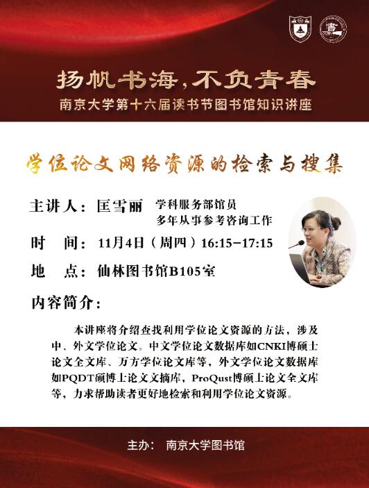 下一篇:【讲座信息】11月3日图书馆知识讲座之ProQuest助力开展选题与研究