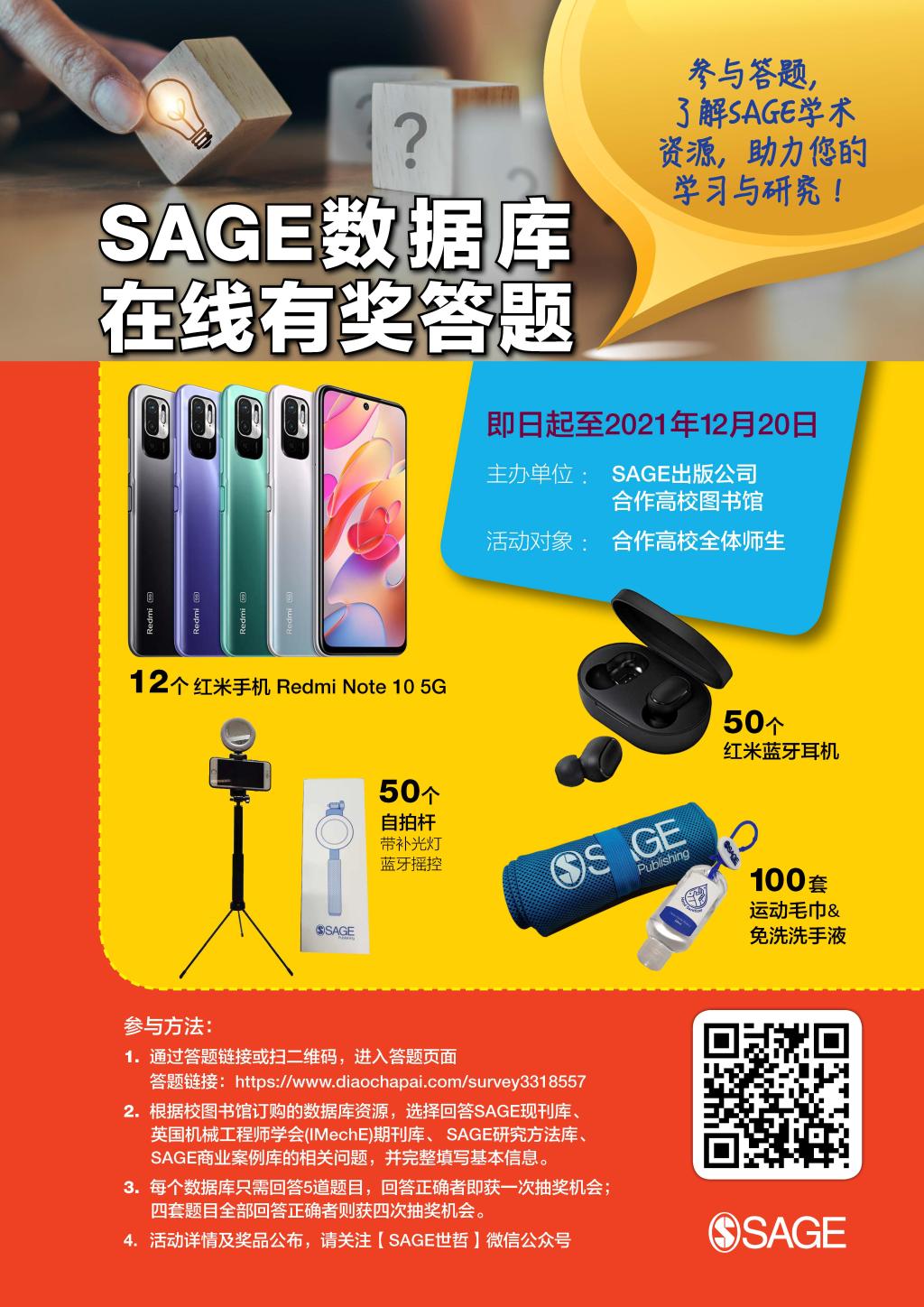 “2021年SAGE数据库有奖答题活动”正式启动啦!参与答题,了解SAGE数据库资源,助力您的学习与研究!