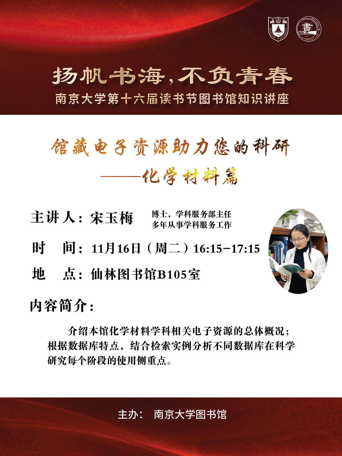 友情提示:B105培训室位于图书馆一楼,从图书馆西入口的报告厅入口处进入。