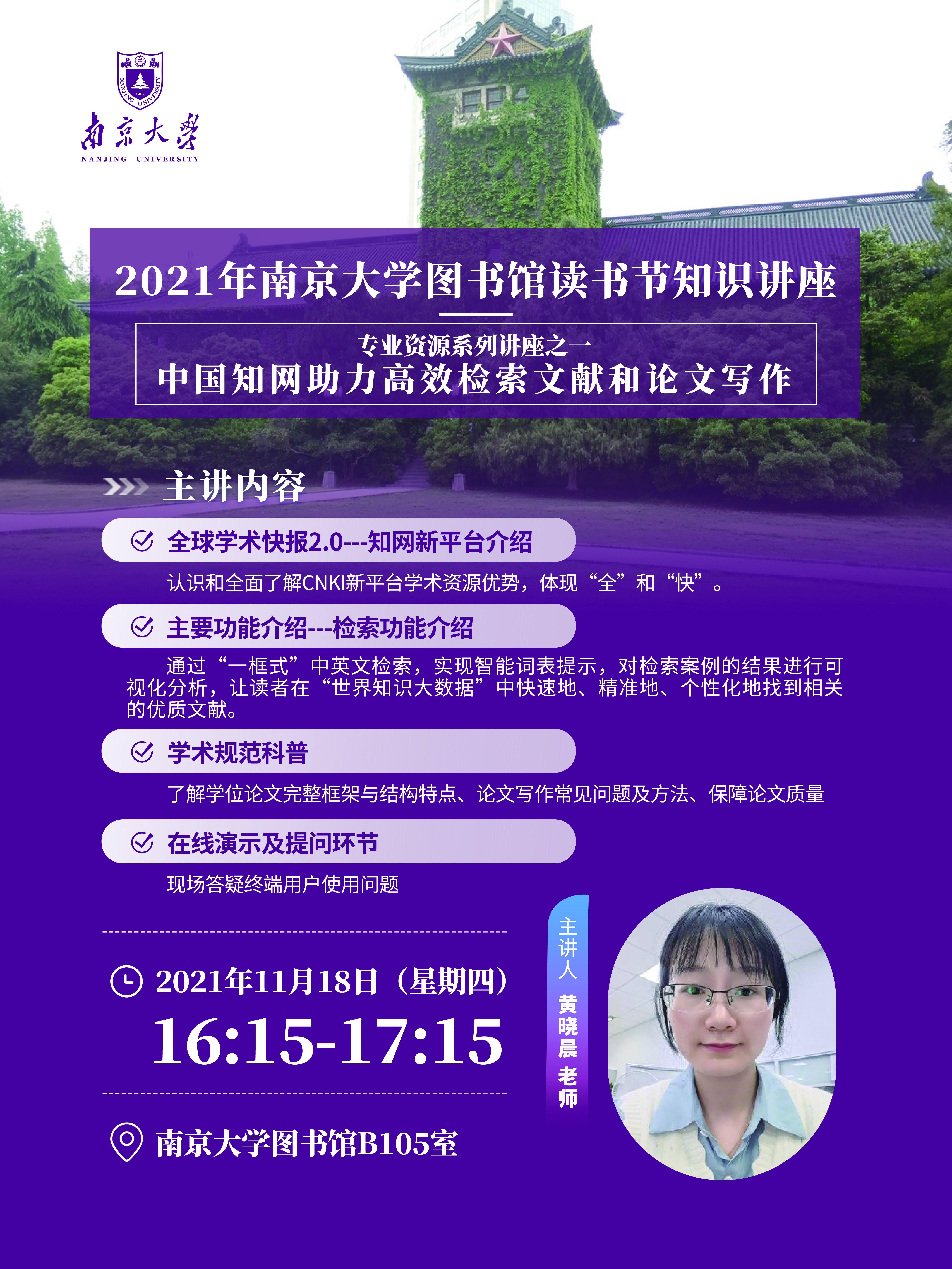 友情提示:B105培训室位于图书馆一楼,从图书馆西入口的报告厅入口处进入。