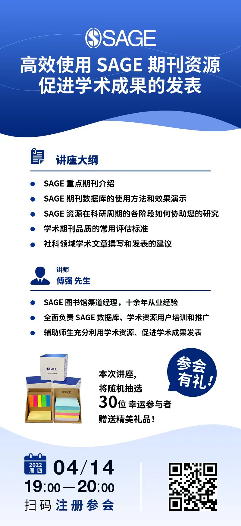 本讲座为在线讲座,扫海报二维码注册参加;参与即有幸运好礼相赠!