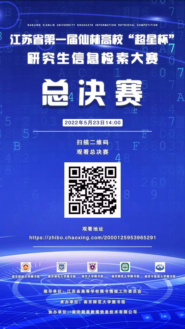 欢迎有兴趣的同学观看本次“超星杯”仙林高校研究生信息检索大赛的线上直播。
