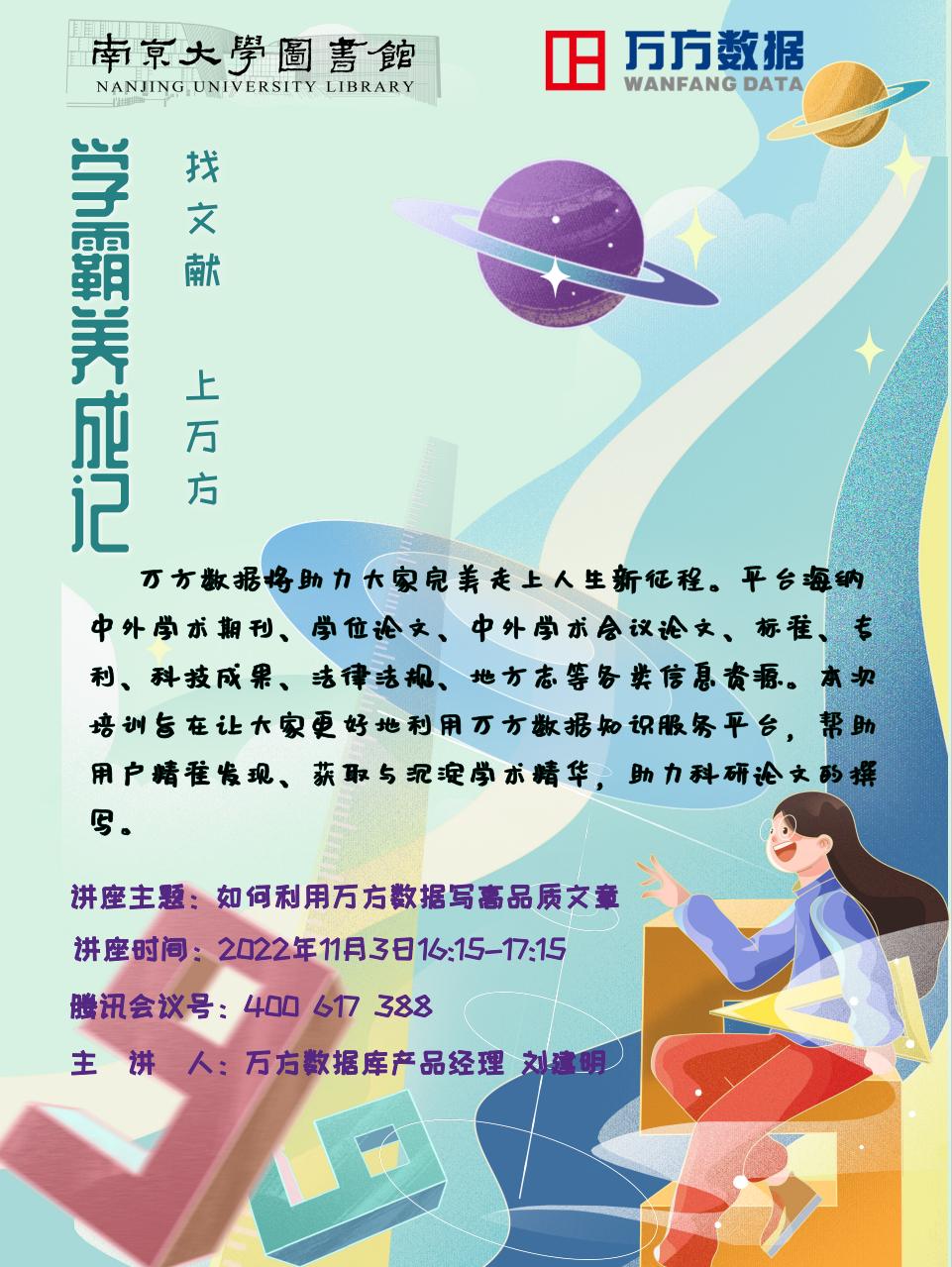 【讲座信息】11月3日图书馆知识讲座之如何利用万方数据写高品质文章