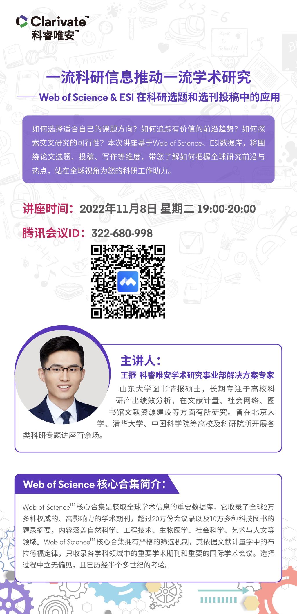 【讲座信息】11月8日图书馆知识讲座之WOS & ESI在科研选题和投稿中的应用