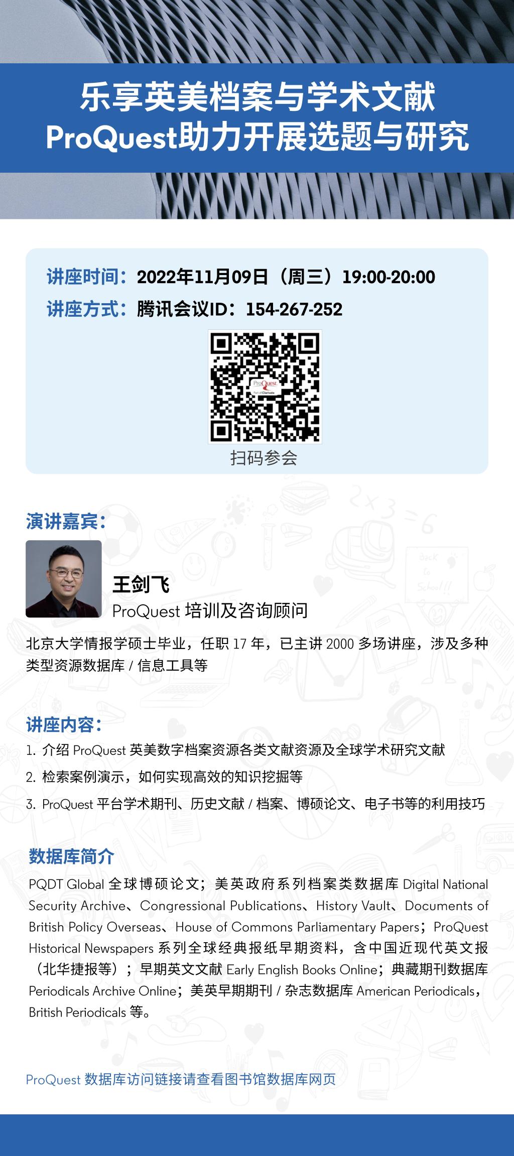 【讲座信息】11月9日图书馆知识讲座之ProQuest助力开展选题与研究