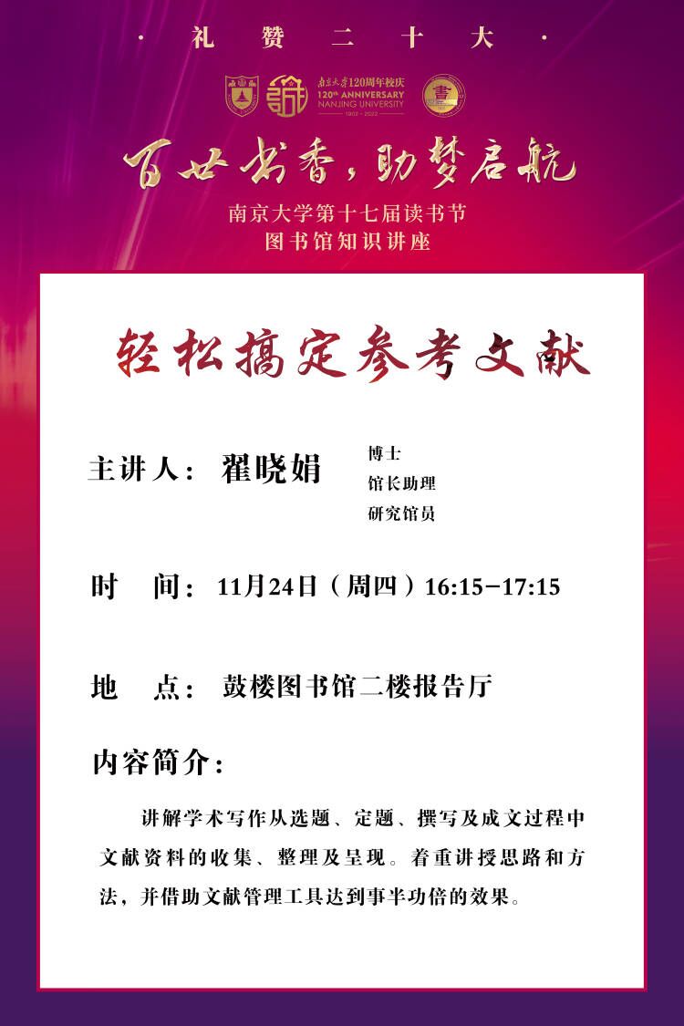 【讲座信息】11月24日图书馆知识讲座之轻松搞定参考文献