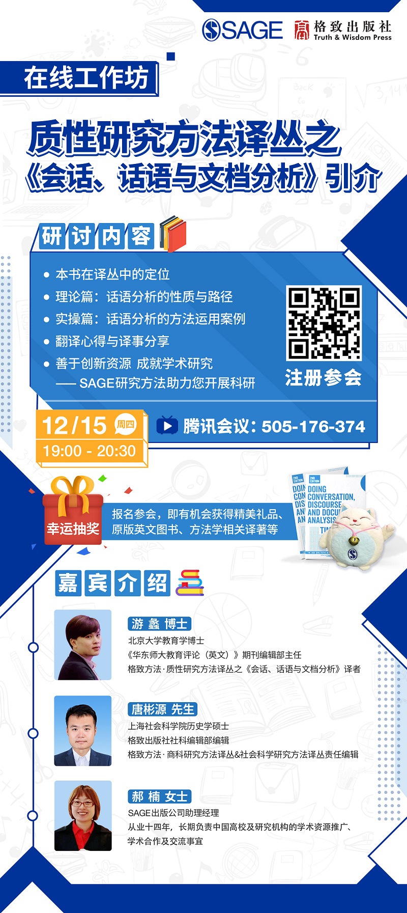 【线上讲座】12月15日SAGE研究方法助力您开展科研