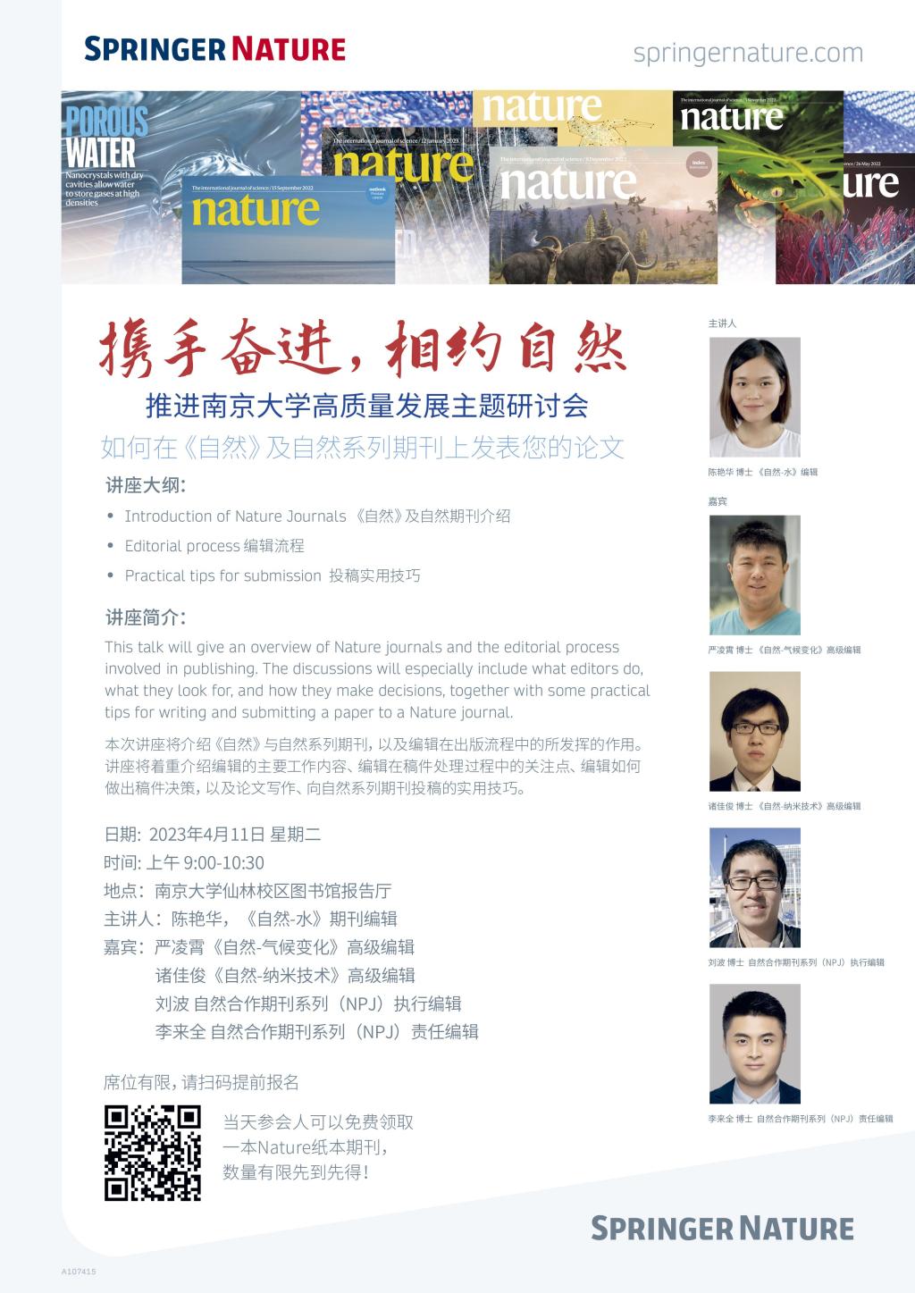 本次研讨会是“携手奋进,相约自然”自然编辑走进南京大学系列活动之一,欢迎广大在校师生、科研人员积极报名参与!