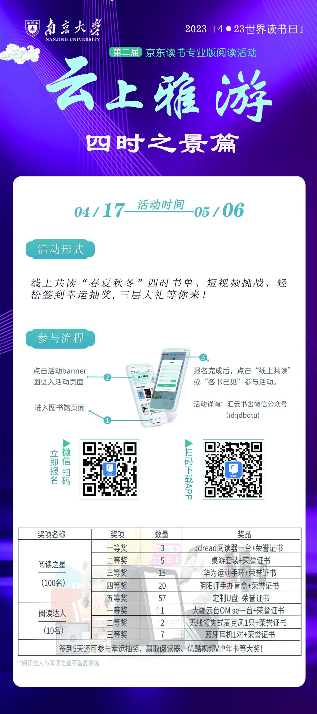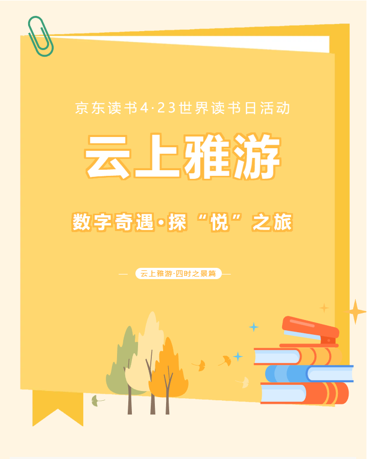 在书香飘韵的四月以及第28个4·23世界读书日来临之际,京东读书特联合全国各高校图书馆、公共图书馆共同开展主题为【云上雅游|数字奇遇·探“悦”之旅】数字阅读与经典阅读融合的线上读书活动。