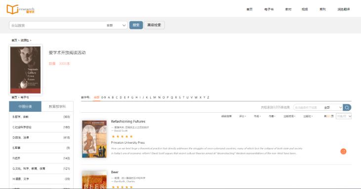 爱学术(iresearch)电子书库由中国教育图书进出口有限公司精心打造。作为本地化的集成平台,爱学术目前已上线超过48万种外文学术电子书,覆盖了人文社科、理工农医等全部学科领域。平台内包含7万余种免费开放资源,支持我校读者在线阅读全文内容。