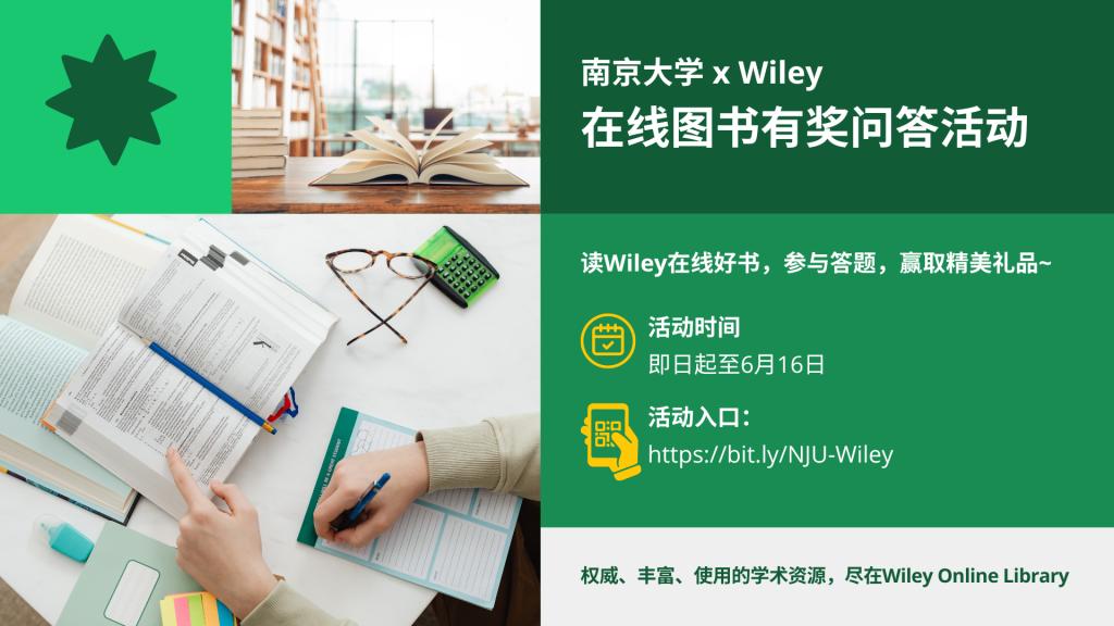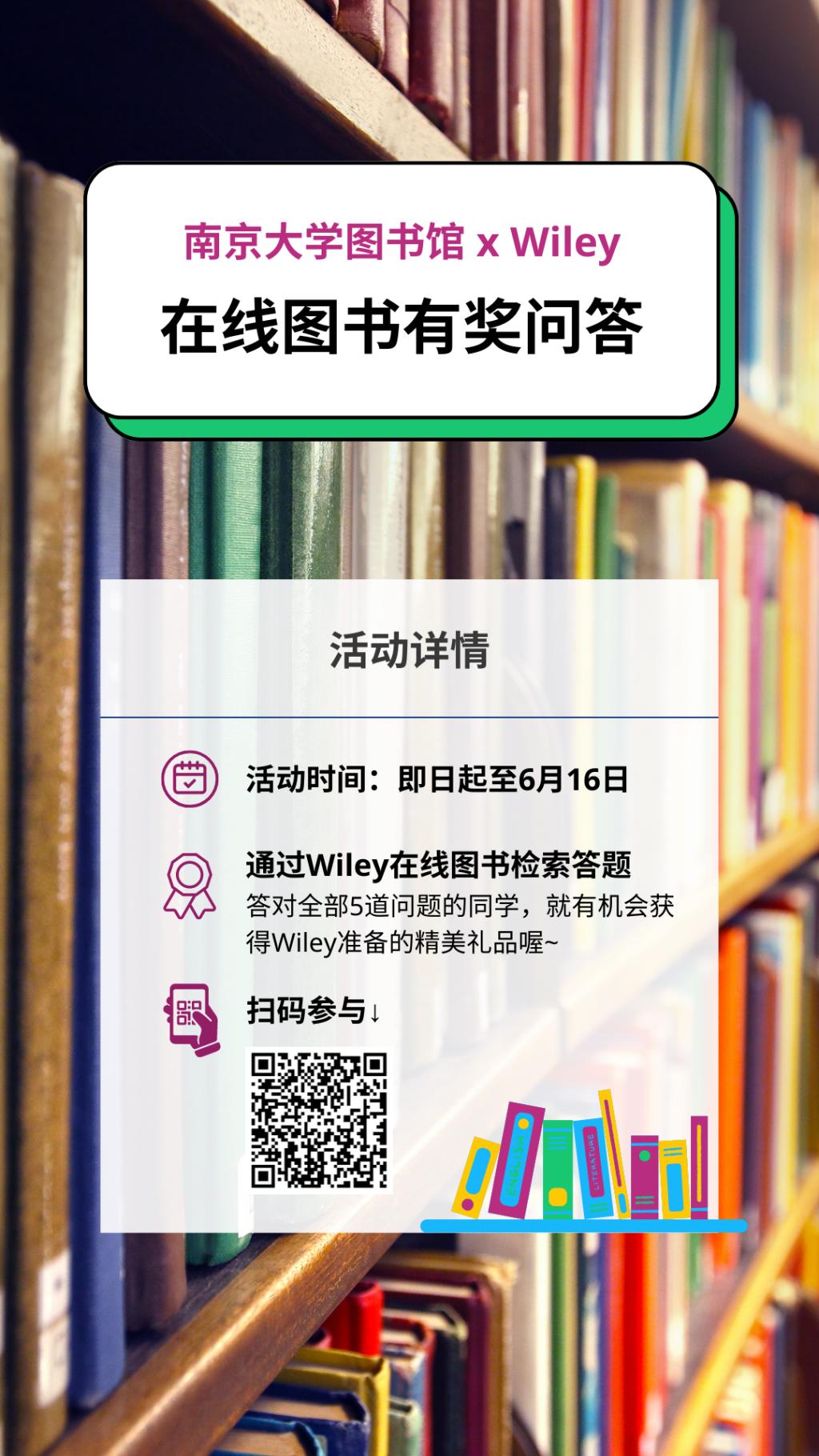 欢迎参加由Wiley出版集团面向南京大学师生举办的“在线图书有奖问答”活动!只需简单几步,你就有机会获得精美礼品喔!