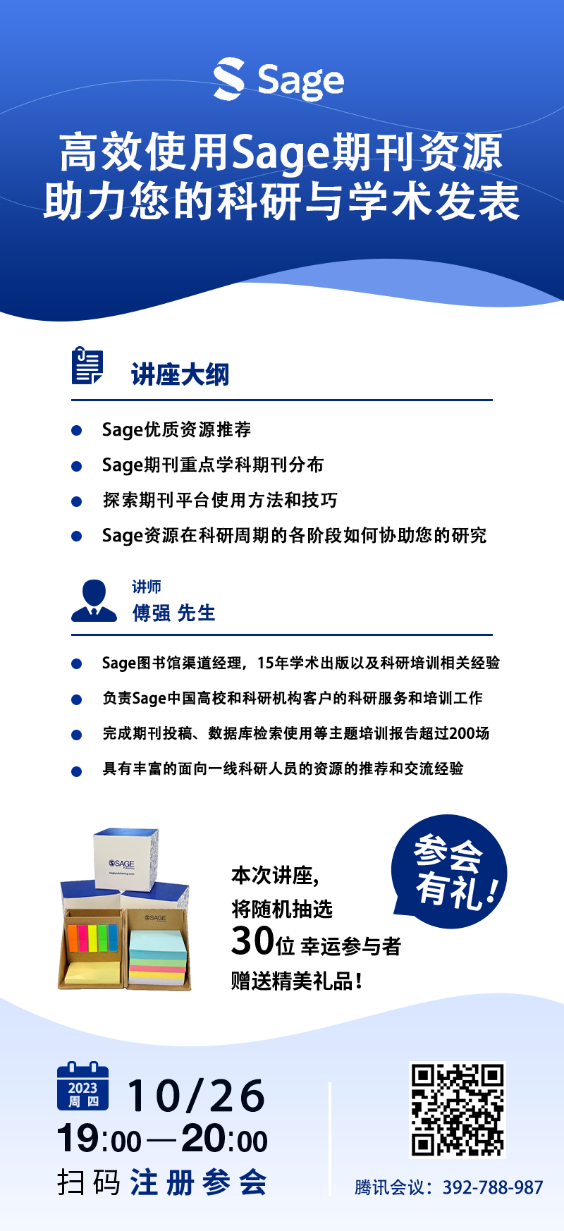 【讲座信息】10月26日高效使用SAGE期刊资源