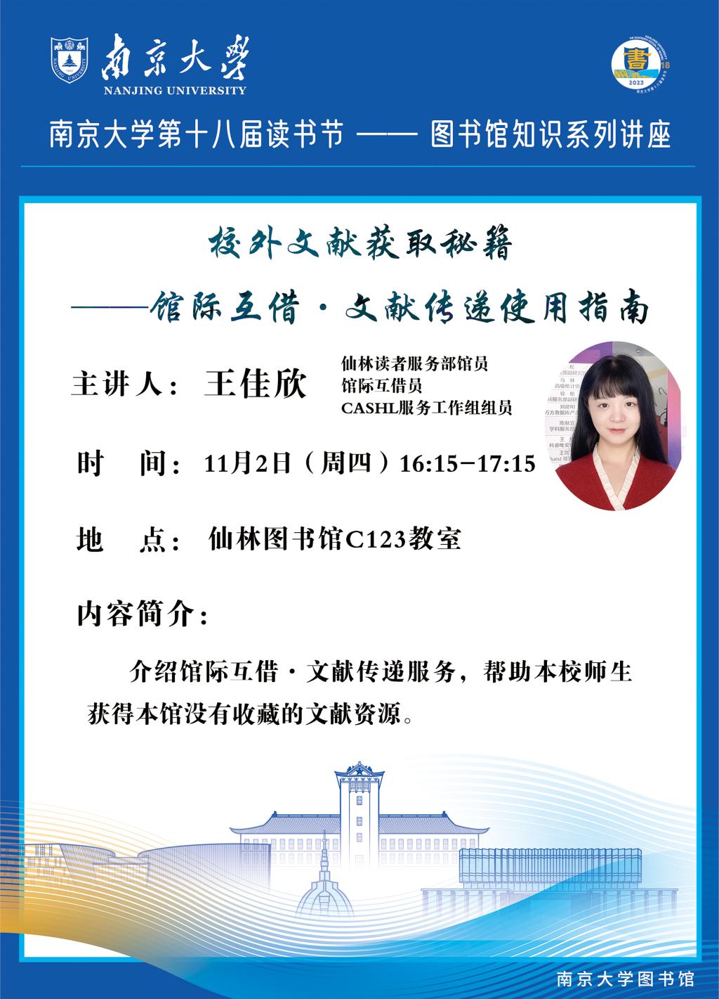 【讲座信息】11月2日图书馆知识讲座之馆际互借文献传递使用指南