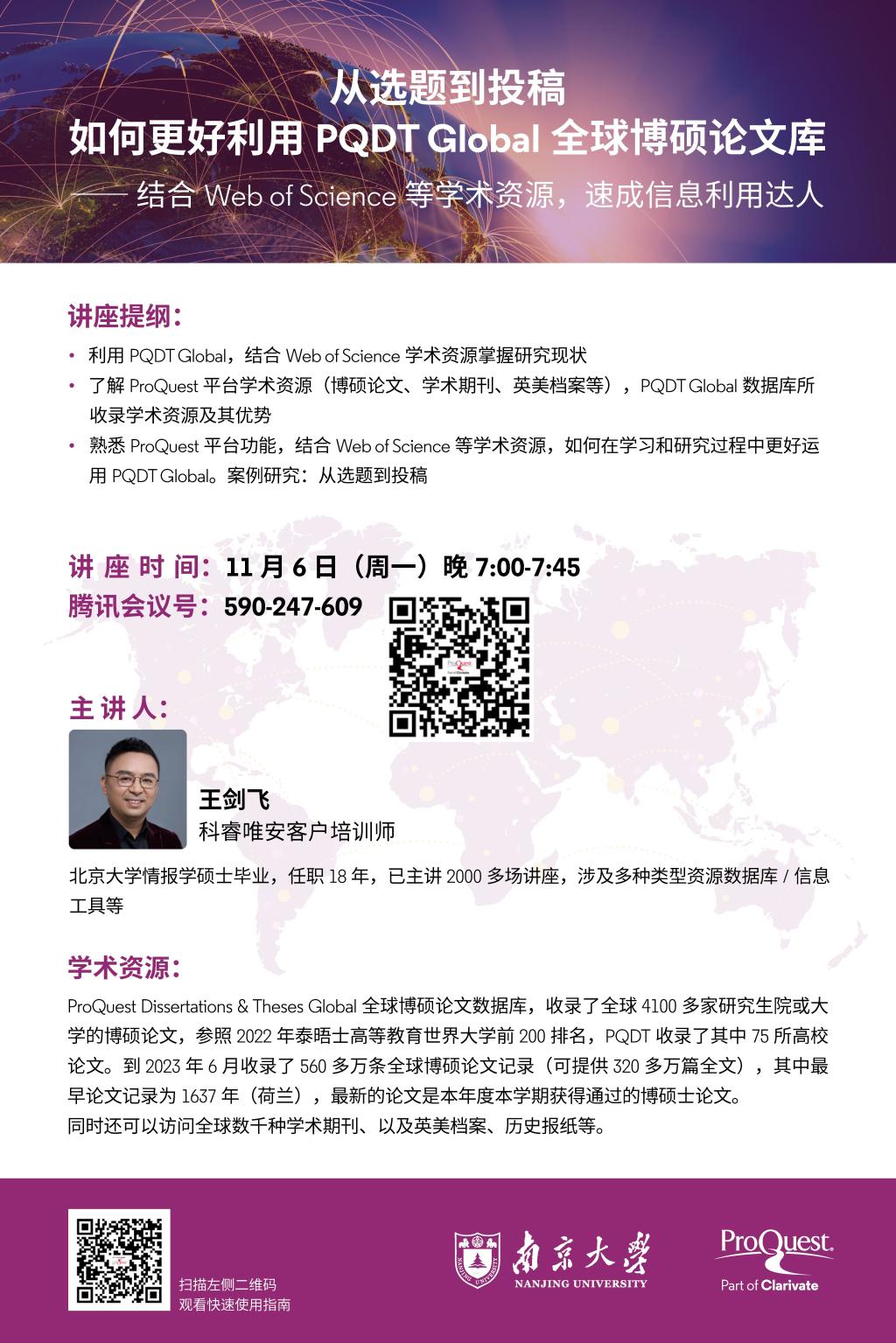 【讲座信息】11月6日图书馆知识讲座之从选题到投稿,如何更好利用 PQDT Global 全球博硕论文库