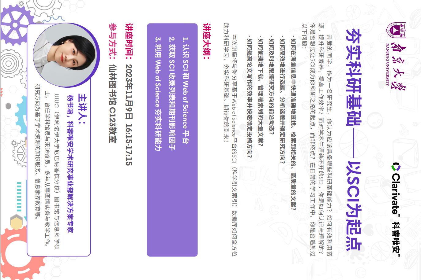 【讲座信息】11月9日图书馆知识讲座之以SCI为起点夯实科研基础