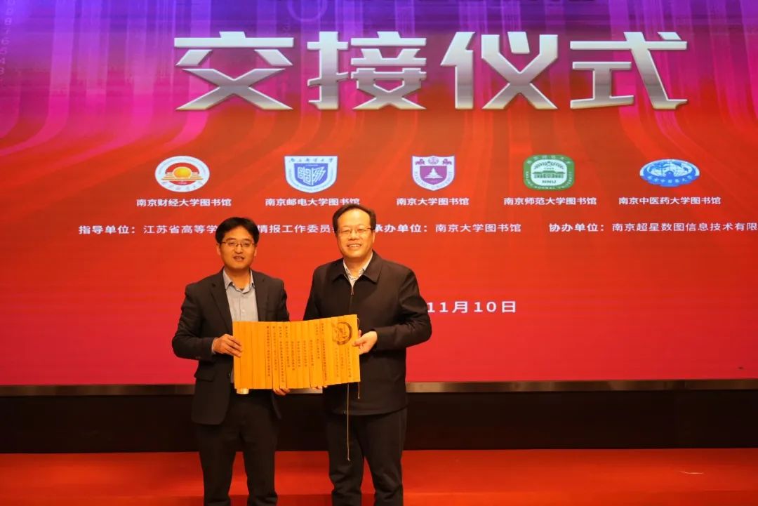 颁奖典礼上,获得特等奖的参赛选手发表了获奖感言。接着,由本届主办单位南京大学图书馆馆长黄贤金将象征着江苏省仙林高校信息检索大赛举办权的“竹简”交接传承于下一届主办单位南京邮电大学图书馆馆长李文涛。至此,历时二个多月的江苏省第二届仙林高校“超星杯”研究生信息检索大赛圆满落幕。