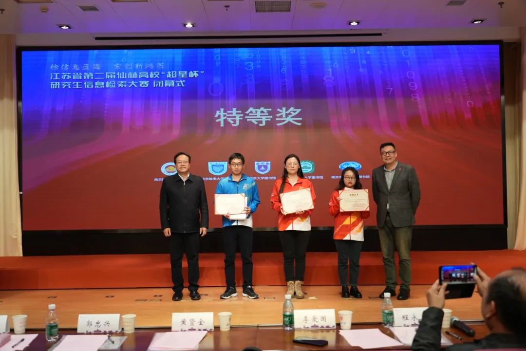 赛后,举办了隆重的颁奖典礼,南京邮电大学2队获得特等奖,南京大学1队、南京邮电大学1队获得一等奖,南京师范大学1队、南京财经大学1队、南京财经大学2队获得二等奖,南京中医药大学1队、南京师范大学2队、南京中医药大学2队、南京大学2队获得三等奖。南京大学图书馆、南京师范大学图书馆获得最佳组织奖,南京邮电大学图书馆、南京中医药大学图书馆、南京财经大学图书馆获得最佳创意奖。