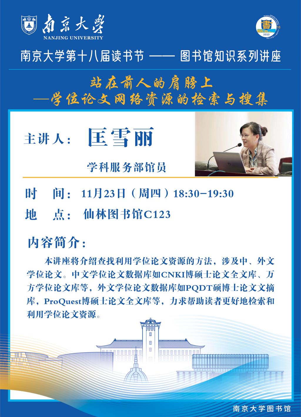 【讲座信息】11月23日图书馆知识讲座之学位论文网络资源的检索与搜集