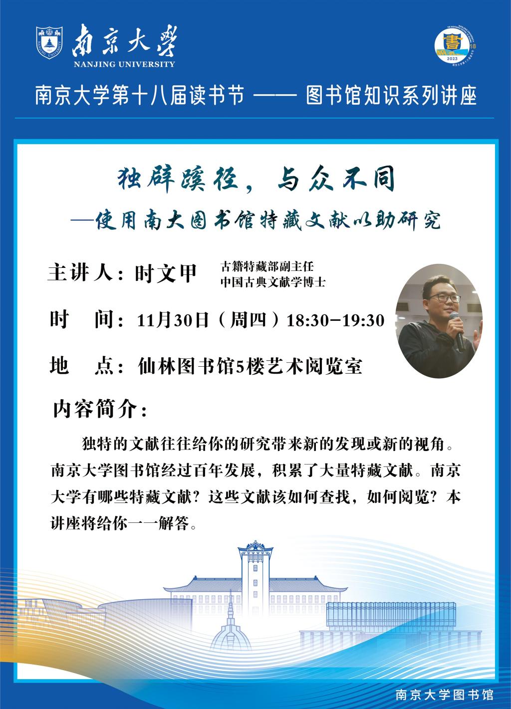 【讲座信息】11月30日图书馆知识讲座之使用南大图书馆特藏文献以助研究