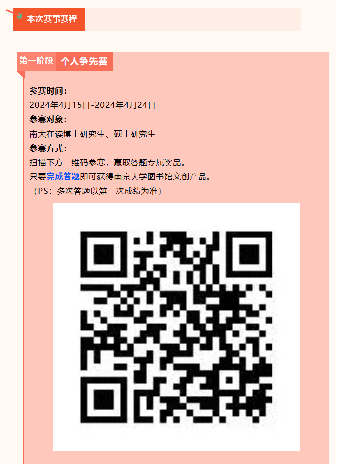 南京大学初赛已经开启,答题请点击下方链接,完成答题即可获得南京大学图书馆文创产品