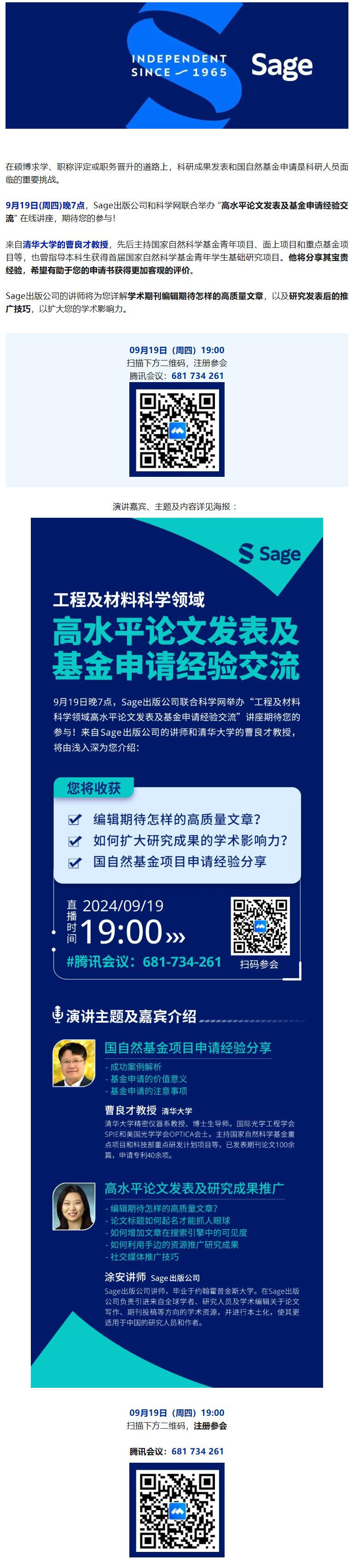 【线上讲座】高水平论文发表及基金申请经验交流