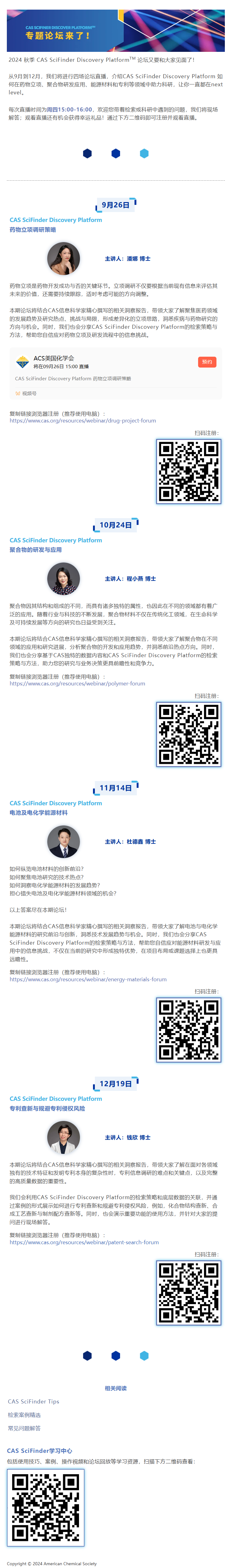 【资源动态】秋季学期CAS SciFinder论坛安排