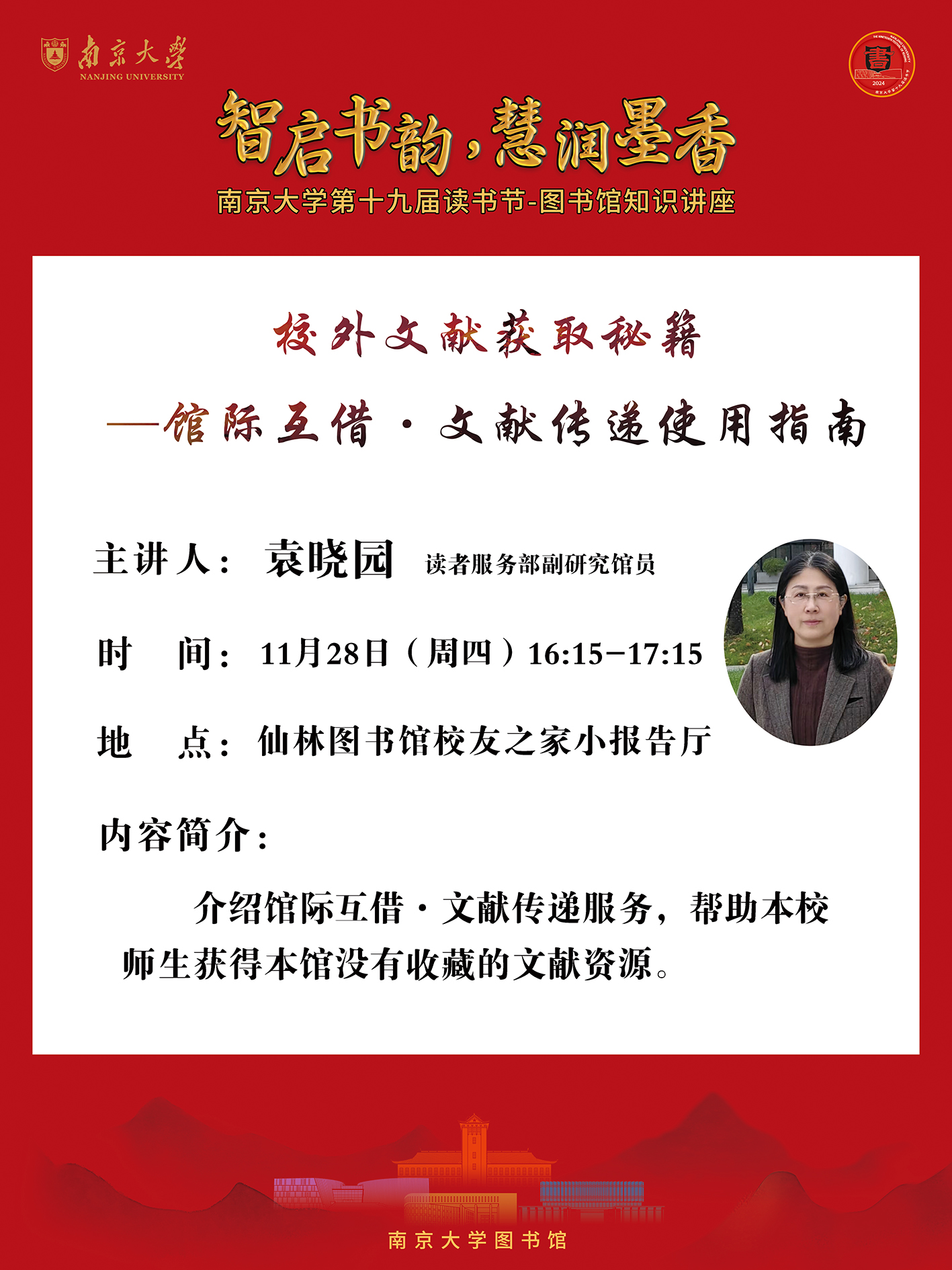 【讲座信息】11月28日图书馆知识讲座之校外文献获取秘籍