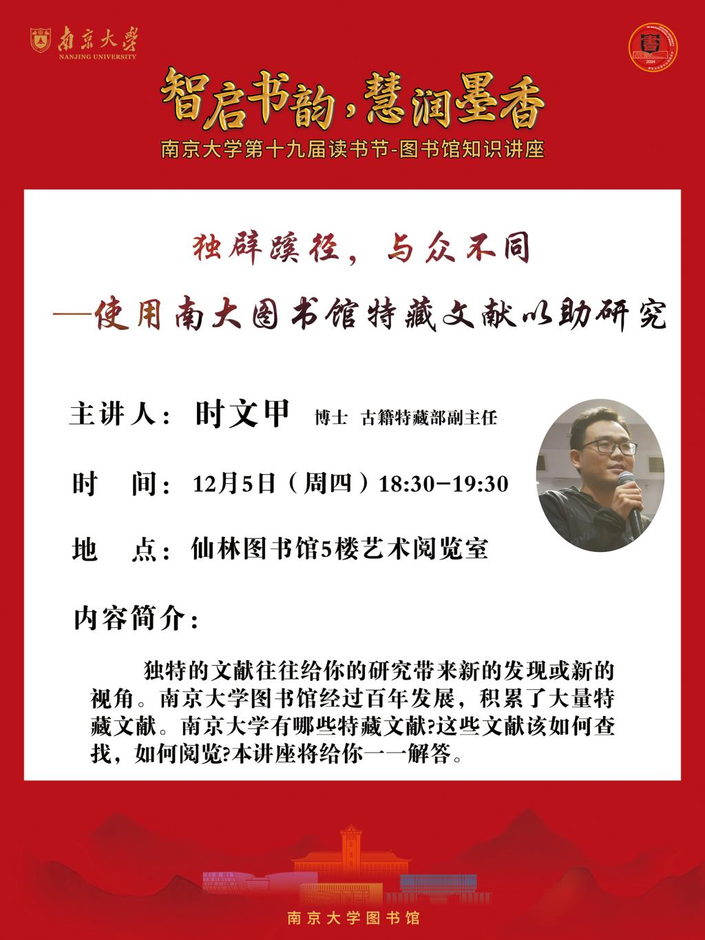 【讲座信息】12月5日图书馆知识讲座之使用图书馆特藏文献以助研究