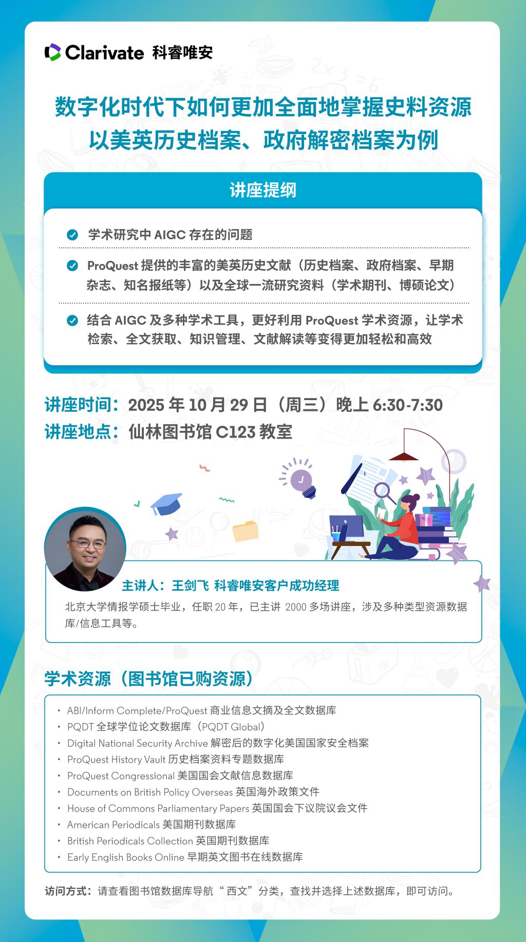 【讲座信息】10月29日图书馆知识讲座之数字化时代下如何更加全面地掌握史料资源