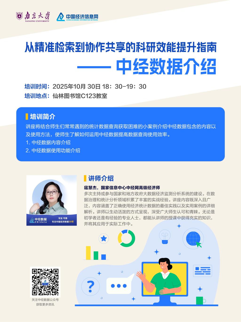【讲座信息】10月30日图书馆知识讲座之中经数据介绍