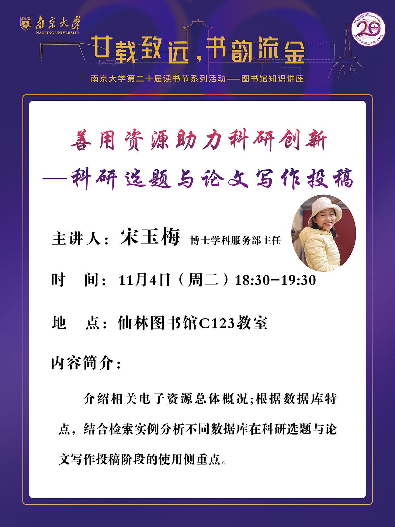 【讲座信息】11月4日图书馆知识讲座之科研选题与论文写作投稿