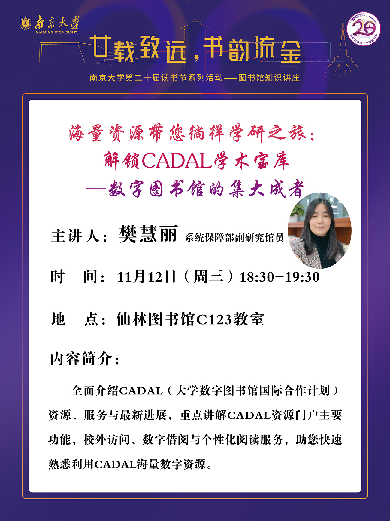 【讲座信息】11月12日图书馆知识讲座之解锁数字图书馆的集大成者CADAL学术宝库