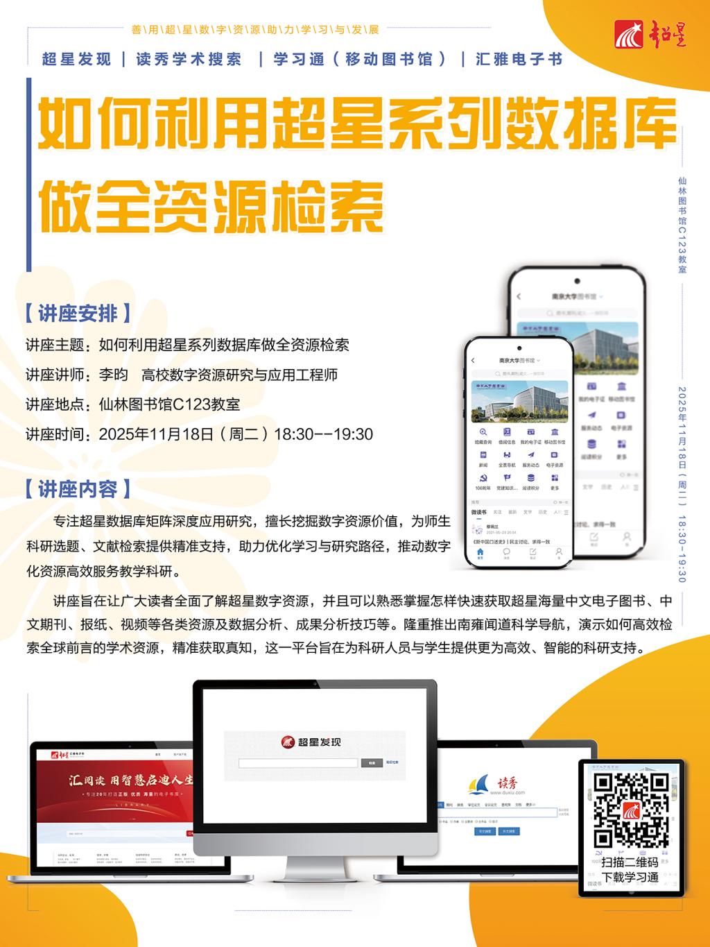 【讲座信息】11月18日图书馆知识讲座之如何利用超星系列数据库做全资源检索