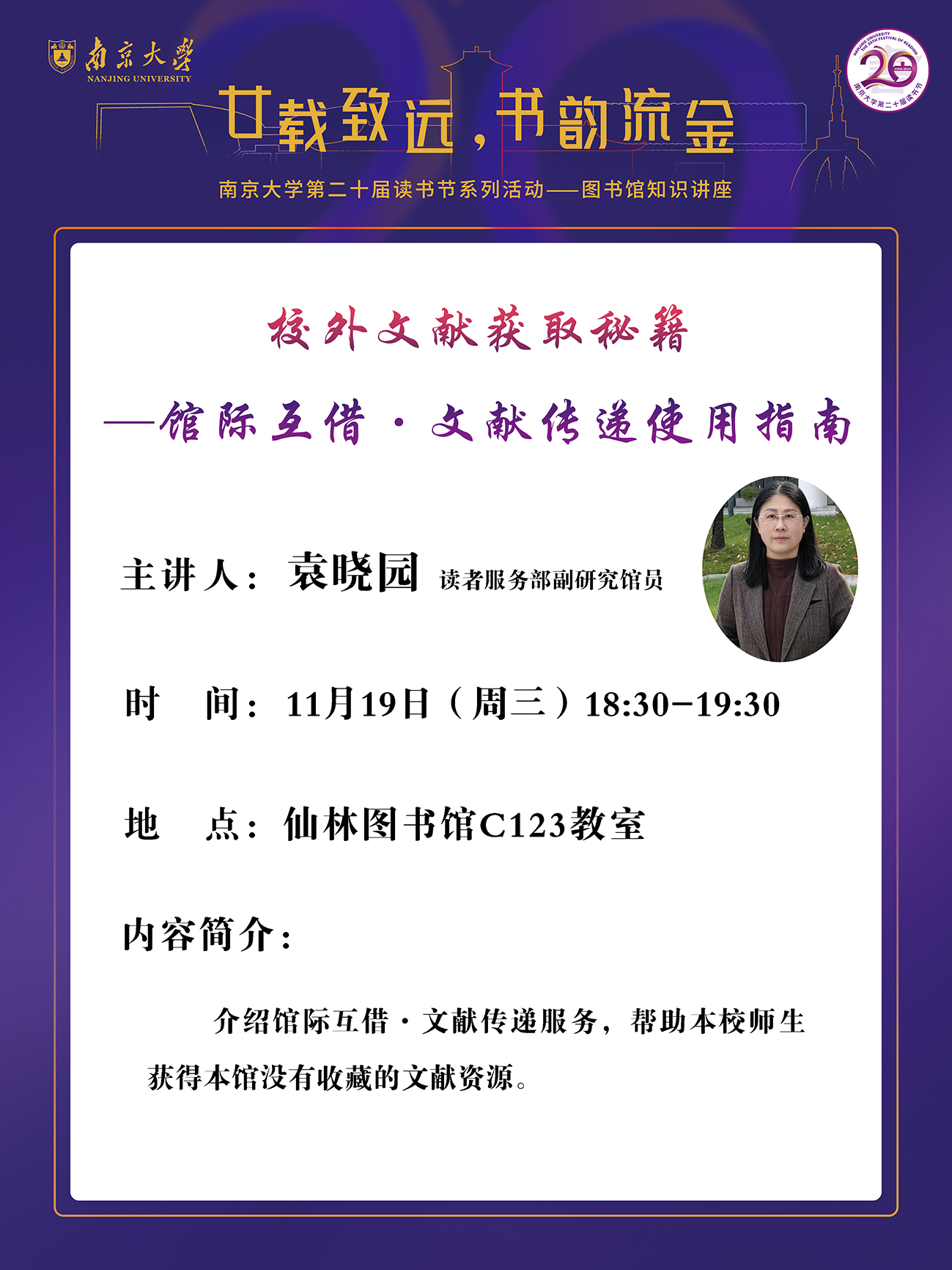 【讲座信息】11月19日图书馆知识讲座之馆际互借文献传递使用指南