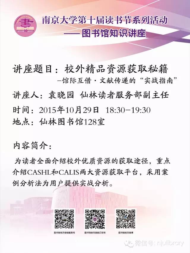 10月29日读书节系列讲座——馆际互借文献传递指南