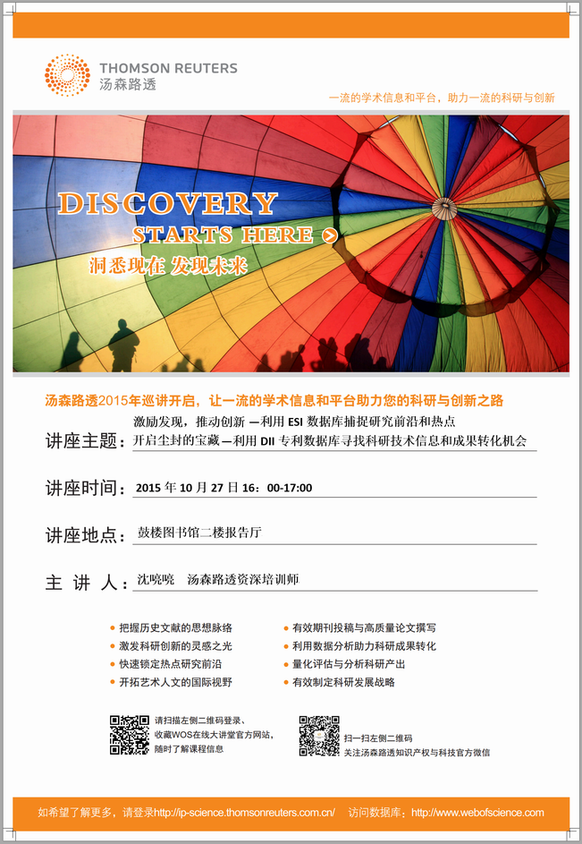 10月27日读书节系列讲座——如何使用DII和ESI数据库